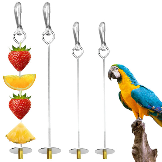 UTXN Parrot Fruit Skewers & Bird Parrot Apple Feeder - 2 PCS Stainless Steel Bird Fruit Skewers, Parrot Treats Food Holder Toy for Budgie, Cockatiel, Parakeet (Silver)