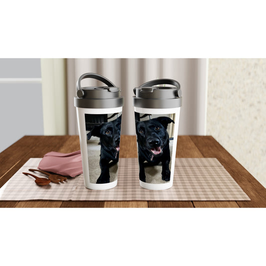 Personalised White 15oz Stainless Steel Travel Mug. FREE DELIVERY