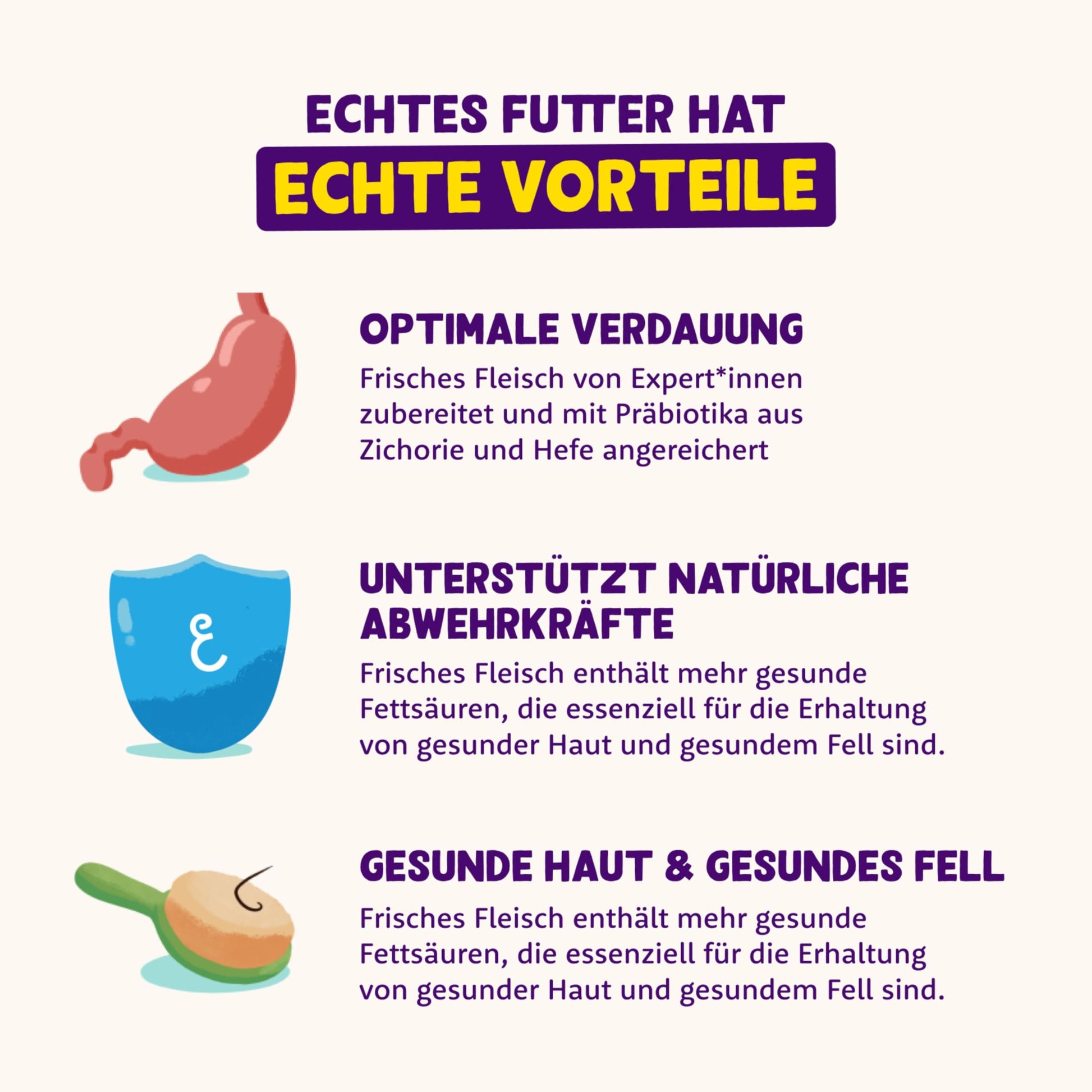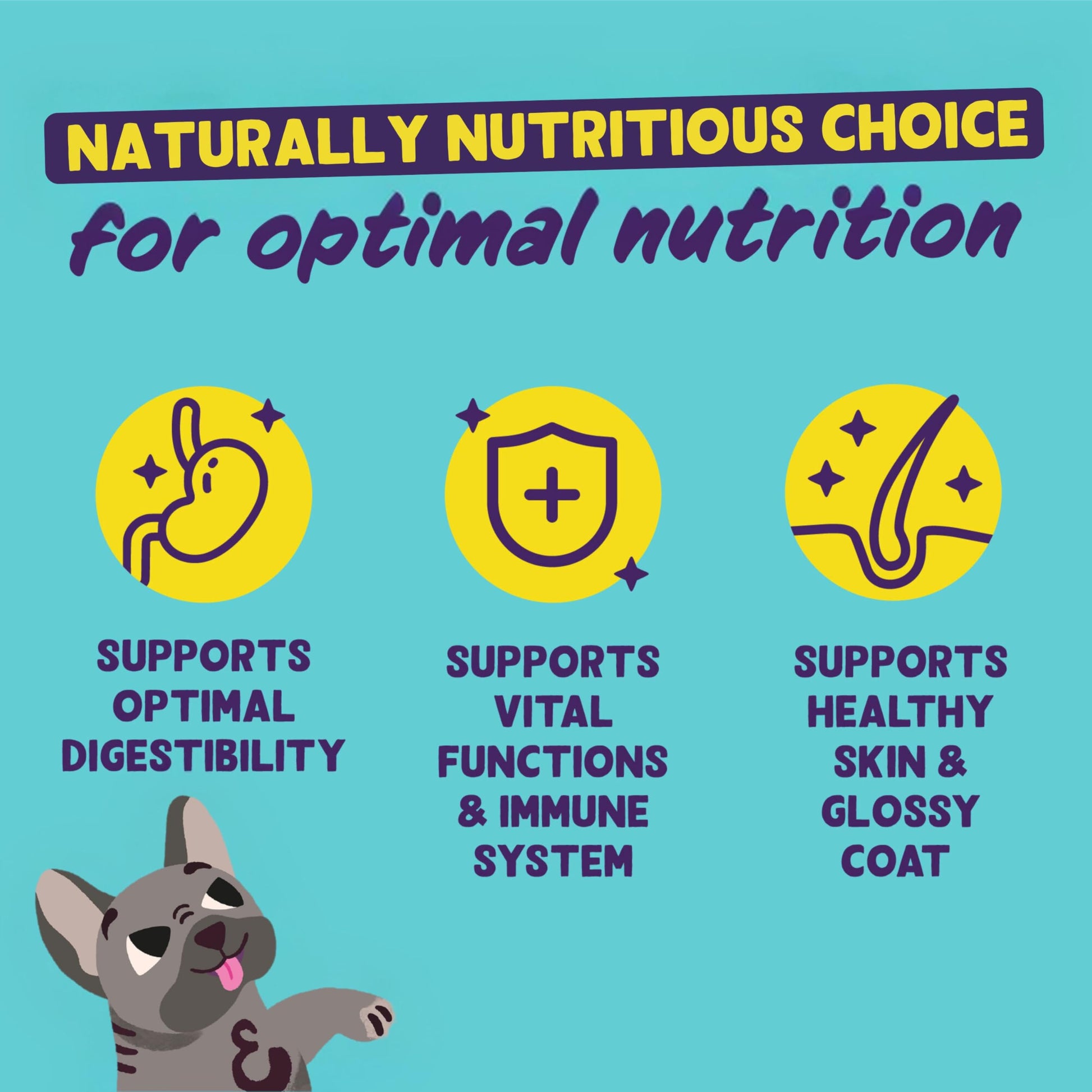 - Dog food with lots of natural ingredients, vitamins and minerals, to support the immune system